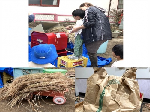田植え、稲刈りを終え、園でささがけしていた稲を、今年初めて2歳児~年長児までみんなで足踏み脱穀機で脱穀しました。 ..